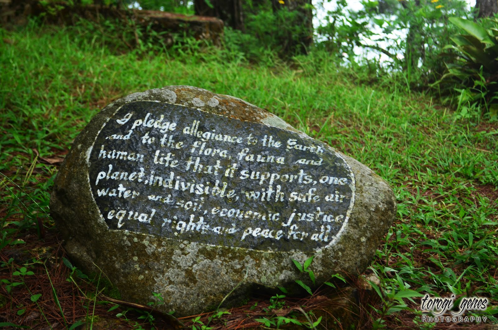 “I pledge allegiance to the Earth and to the flora, fauna and human life that it supports, one planet, indivisible, safe air, water and soil, economic justice equal rights and peace for all.”